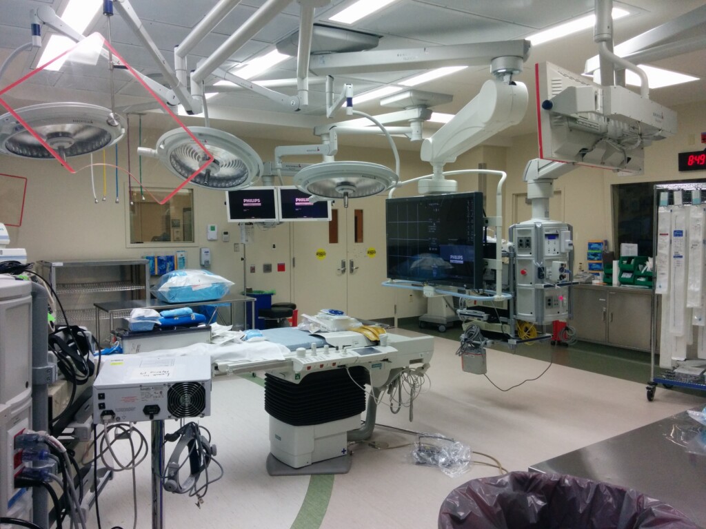 The new hospital encompasses approximately 860,000 square feet and includes 348 patient beds, a rooftop helipad, a central courtyard, a rooftop garden, and a prominent chapel structure. The eight-story plus basement facility is supported by a freestanding central utility plant, one attached parking garage, a second remote parking structure, and integration with the adjacent Russell Pavilion building. CRA’s MEP design extended across all facility components, including a campus-wide fire alarm system designed to support a complex smoke evacuation system serving the operating rooms and a comprehensive smoke control strategy for shafts and stairwells.